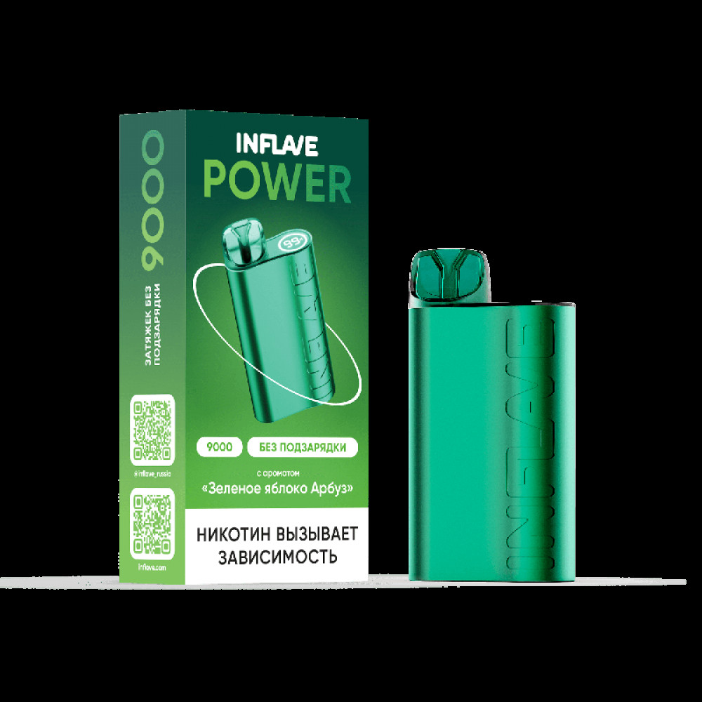 Электронная сигарета INFLAVE POWER 9000 затяжек Зеленое Яблоко Арбуз - купить в Лосино-Петровском